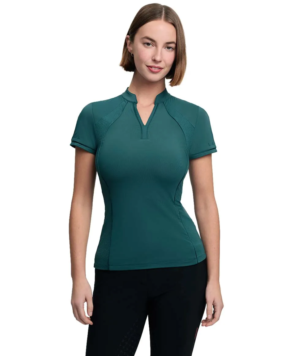Get the feminine edge in this contemporary classic base layer with a technical twist. The super-flattering neckline features a notched neck with a band collar, offering structure in the front of the piece, which is athletic yet open. The mesh side panels provide technical ventilation and breathability, while the style contours fit and flare over the body. Satin piped details lend subtle sophistication and gloss silicone LeMieux branding catches the light for an elevated look. Mix and match with the Simone Pull-On.
